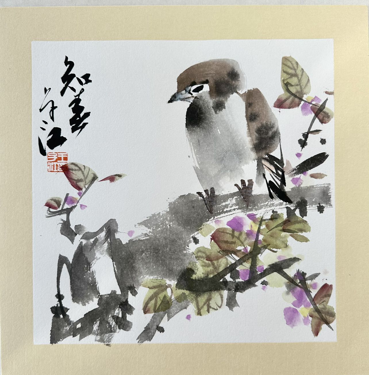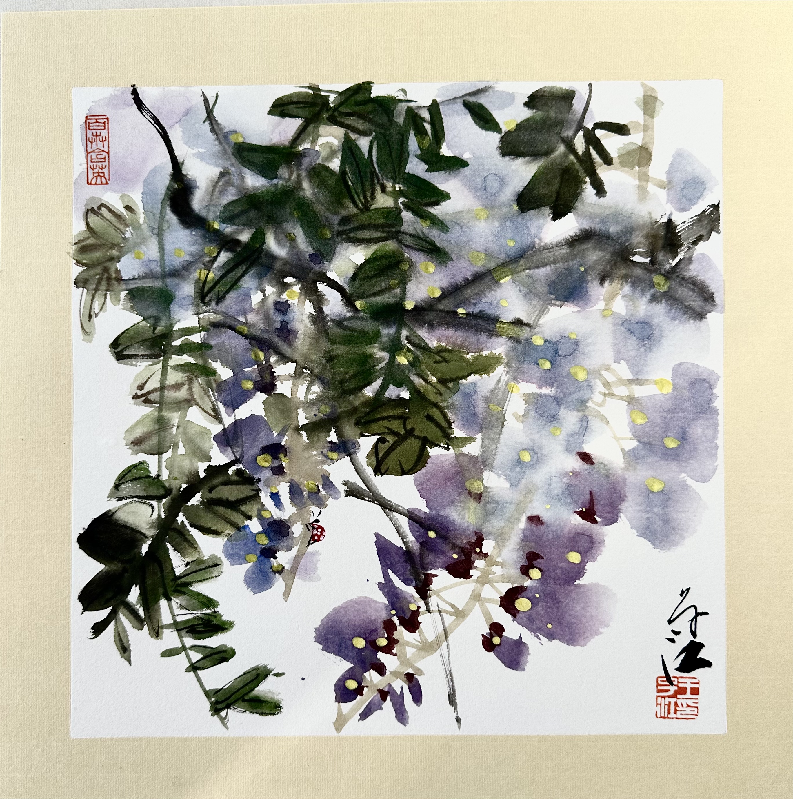 13)《花底風光醉眼疑》(50 x 50 cm)墨彩画