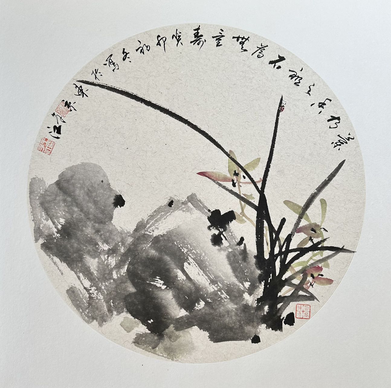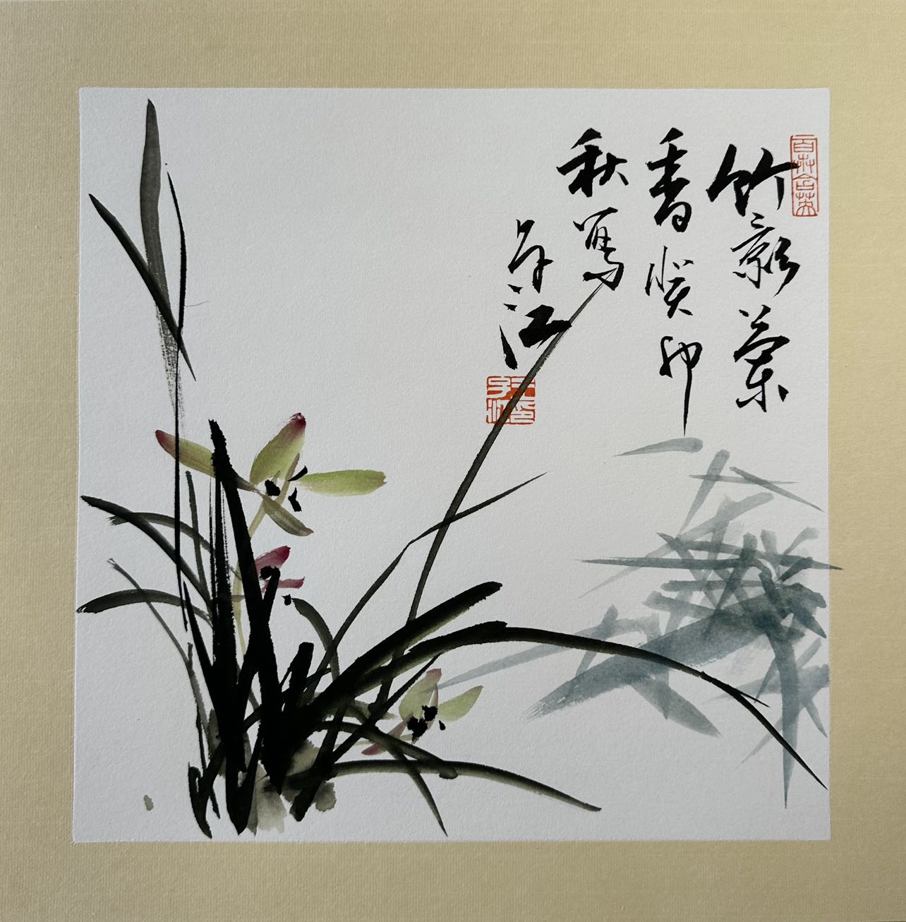 6)《竹影蘭香》(27x27 cm)墨彩画