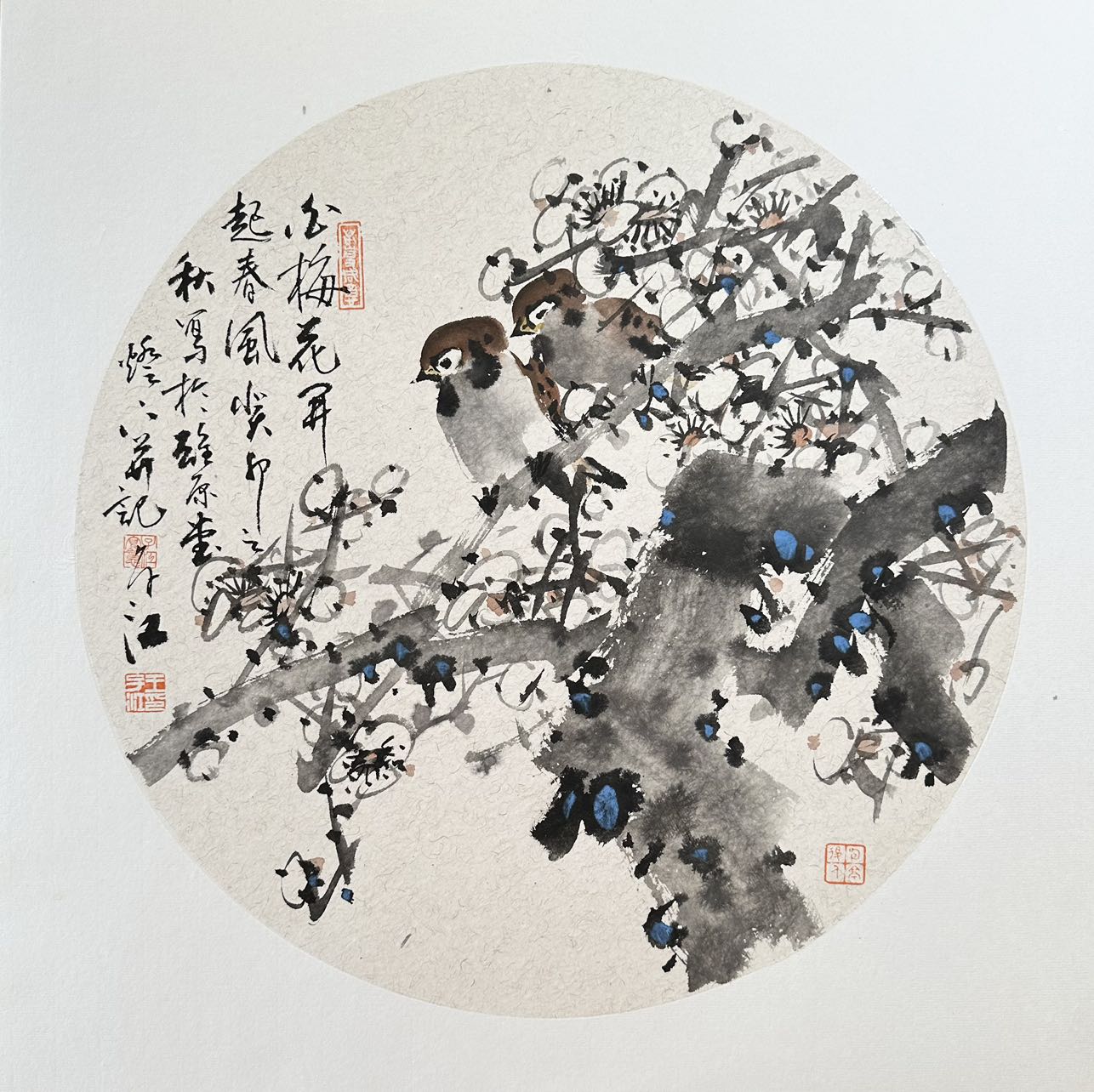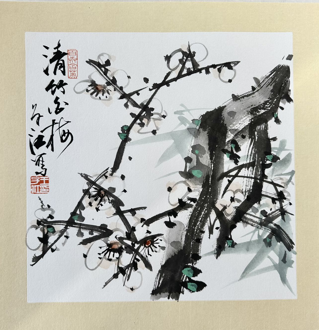 12)《梅壽雅馨》(50 x 50 cm)墨彩画