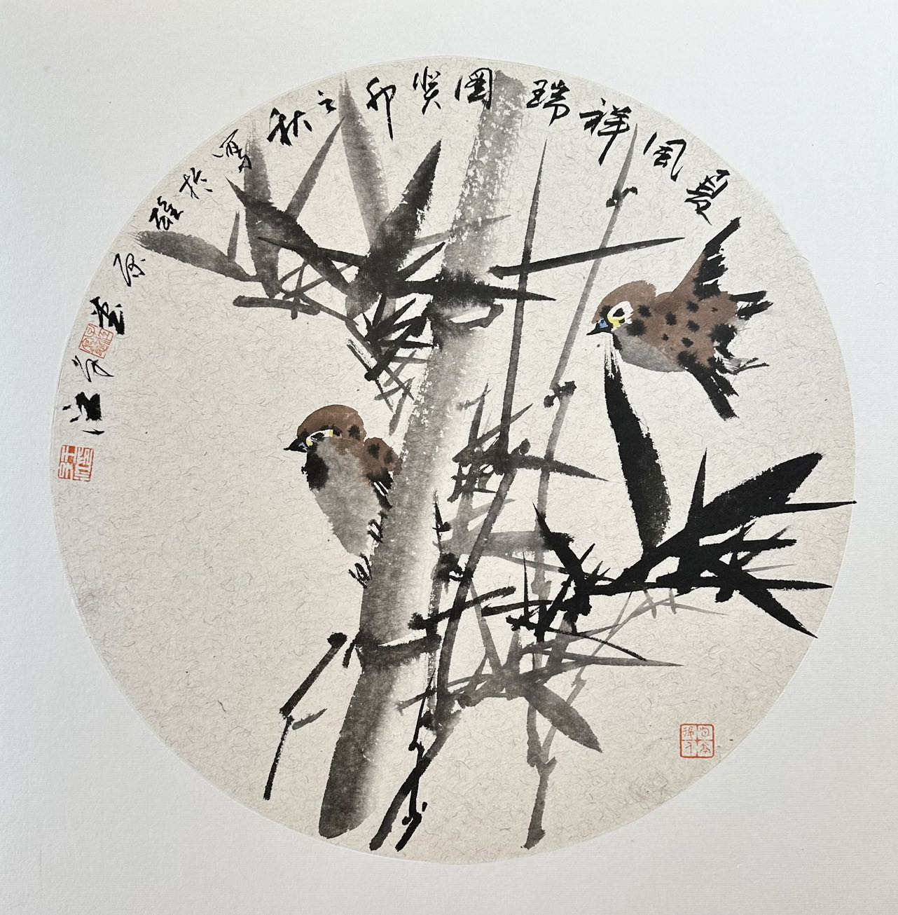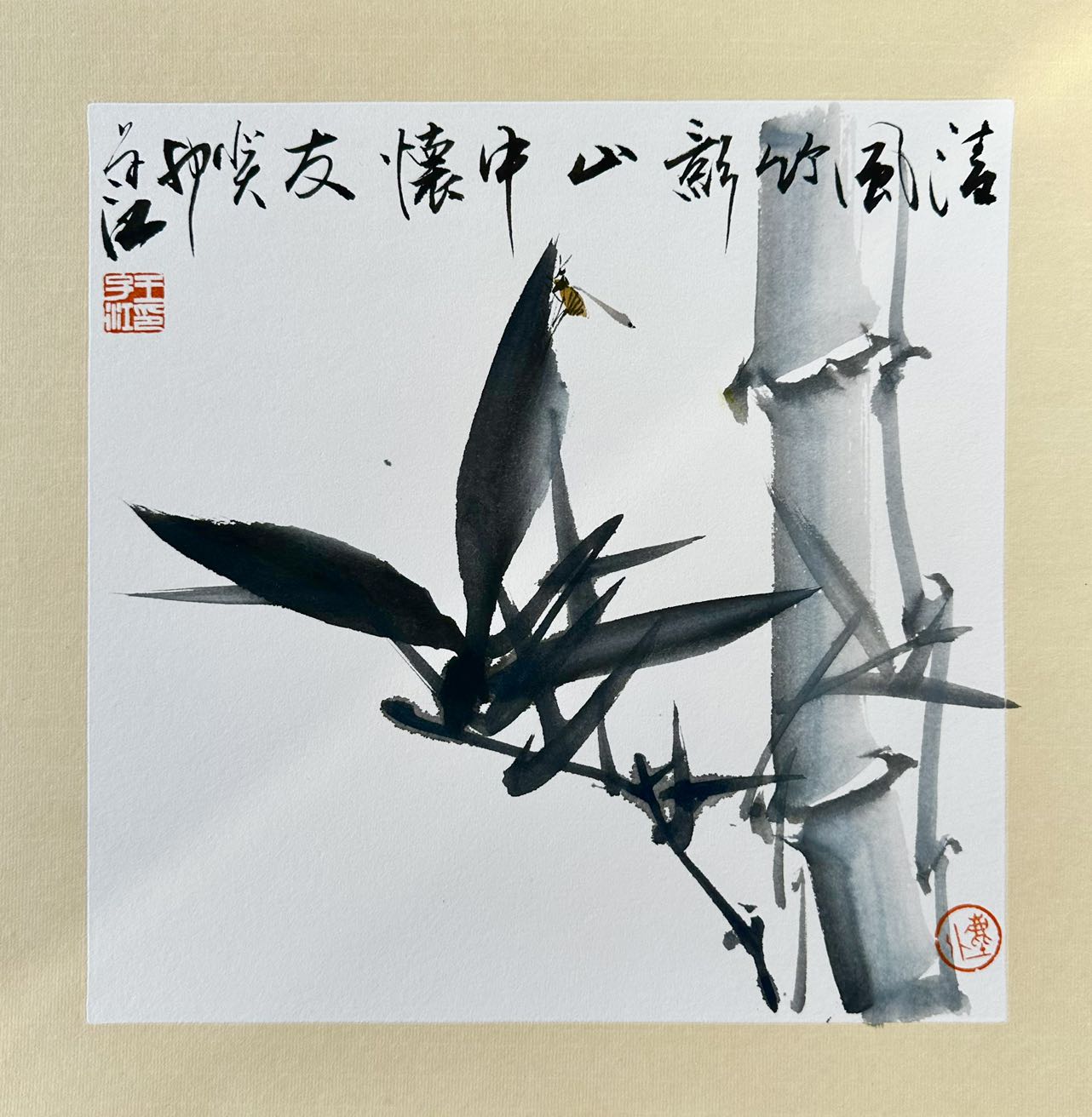 8)《清風竹影山中懷友》(27x27 cm)墨彩画