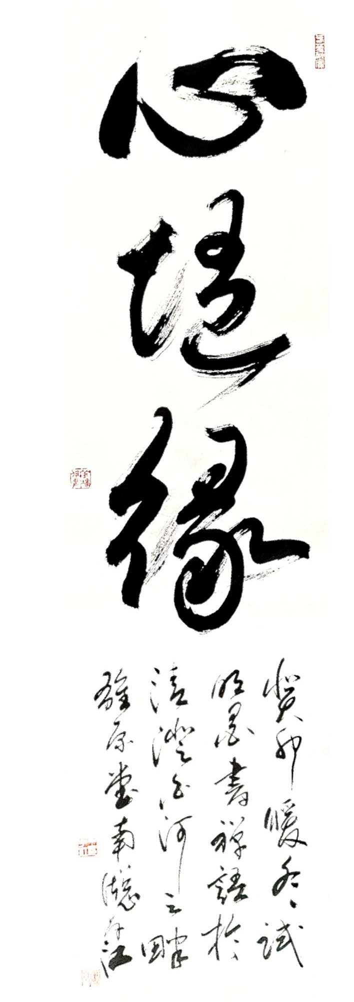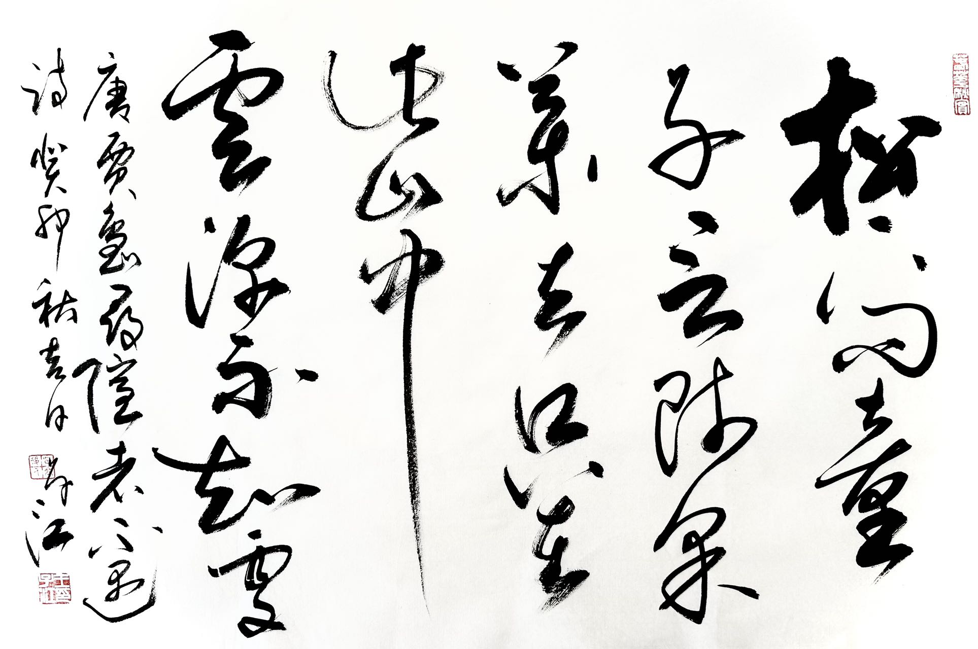 9)《松下問童子,言師採藥去。只在此山中,雲深不知處。唐·賈島詩》(69 x 46.5 cm)書法
