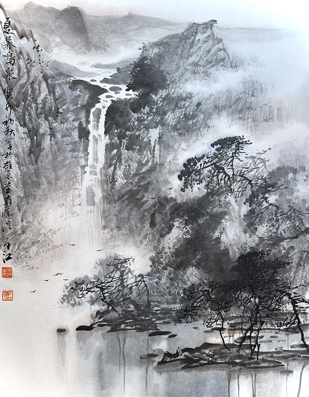 1)《夏暮鳴泉》40.5x31.5cm  墨彩画