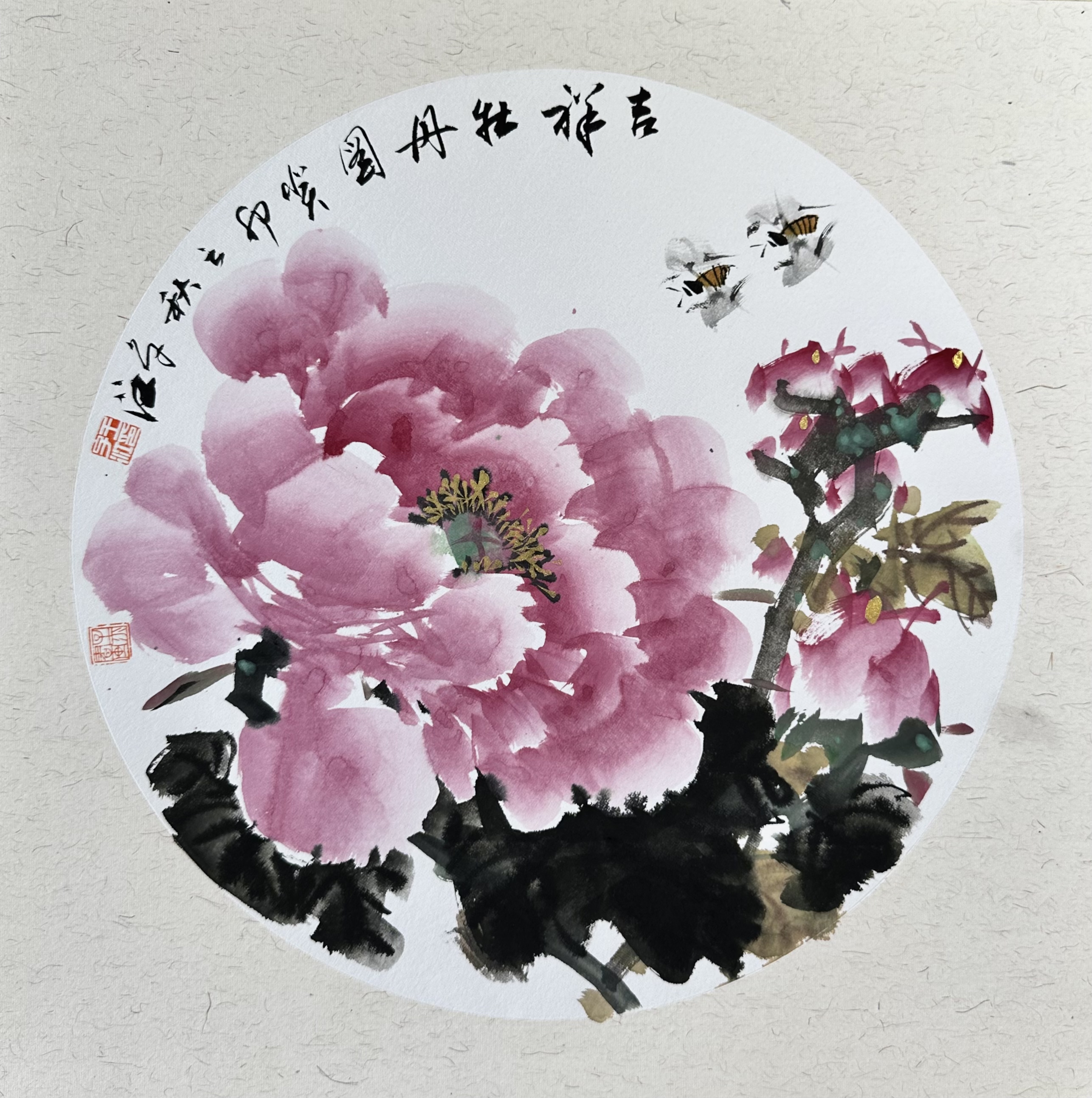 11)《吉祥牡丹图》(50 x50 cm)墨彩画