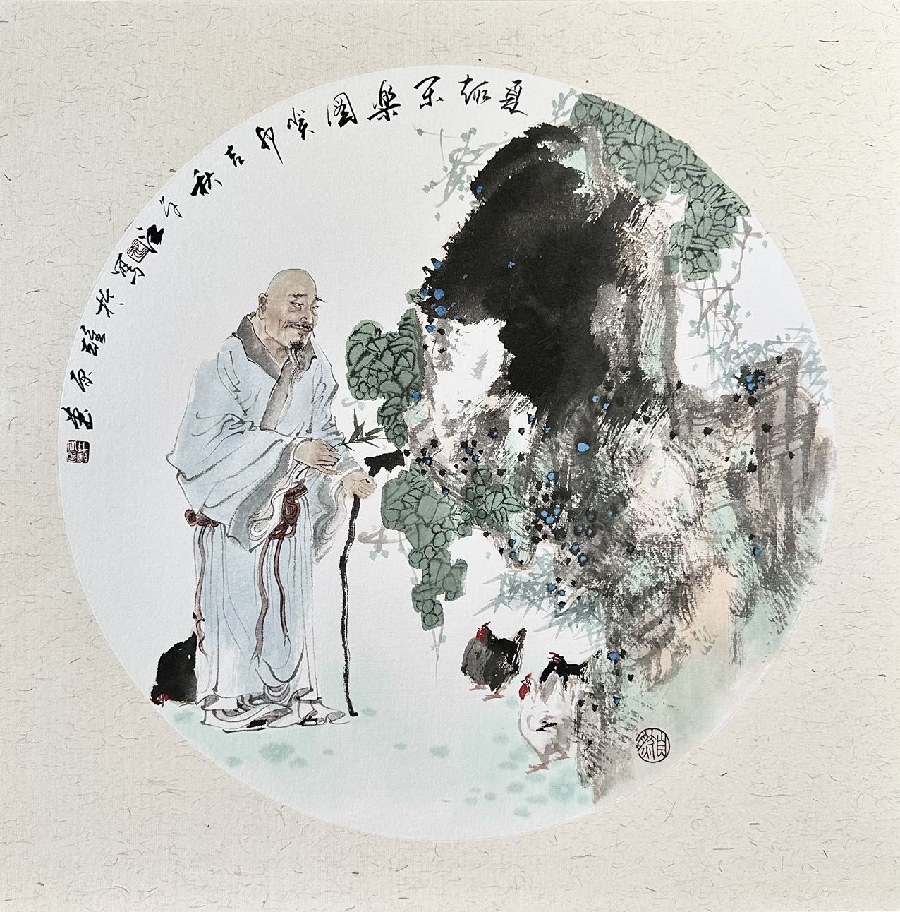 16)《夏趣闲楽图》(50 x 50 cm)墨彩画