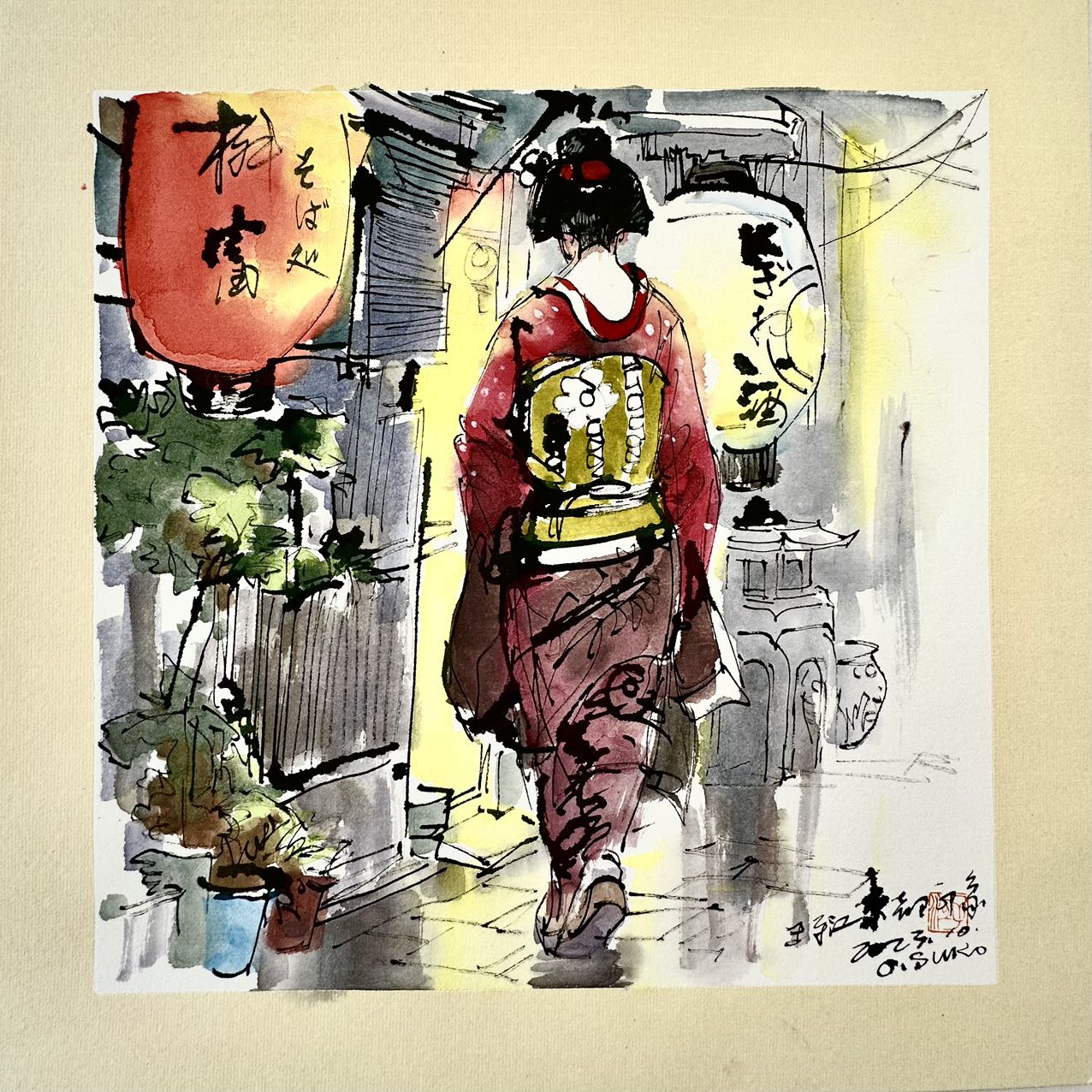18)《京都風情》(27x27 cm)竹筆淡彩写生