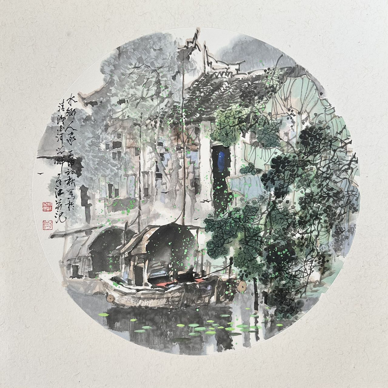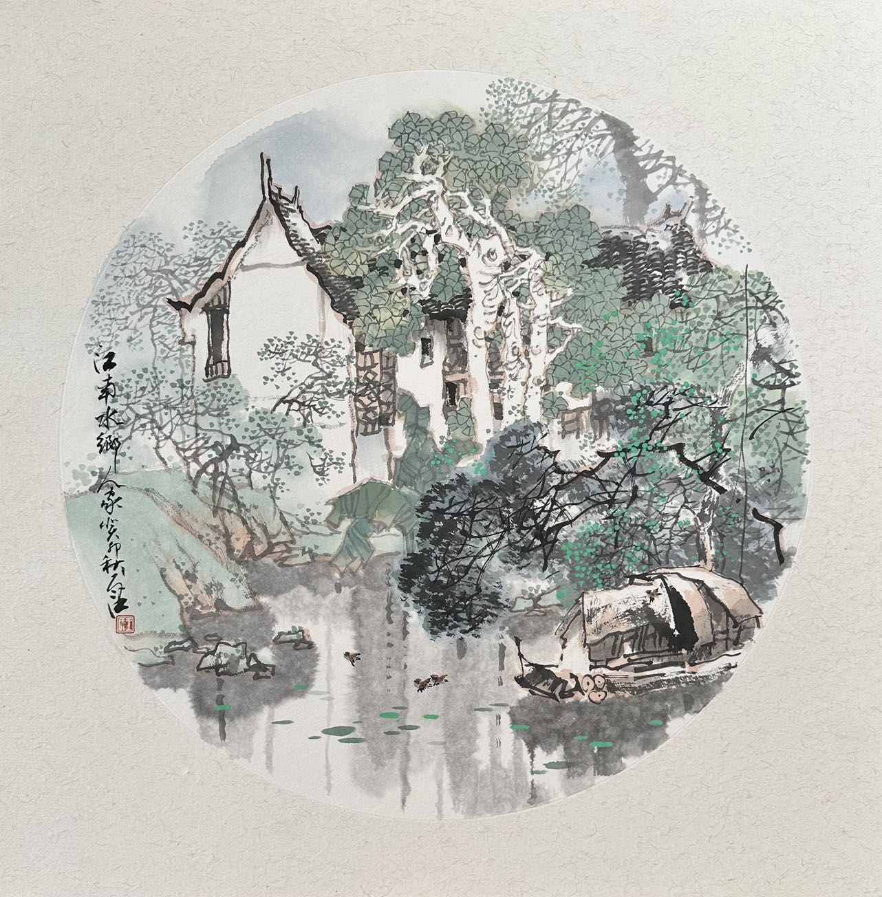 21)《江南水鄉人家》(50 x 50 cm)墨彩画