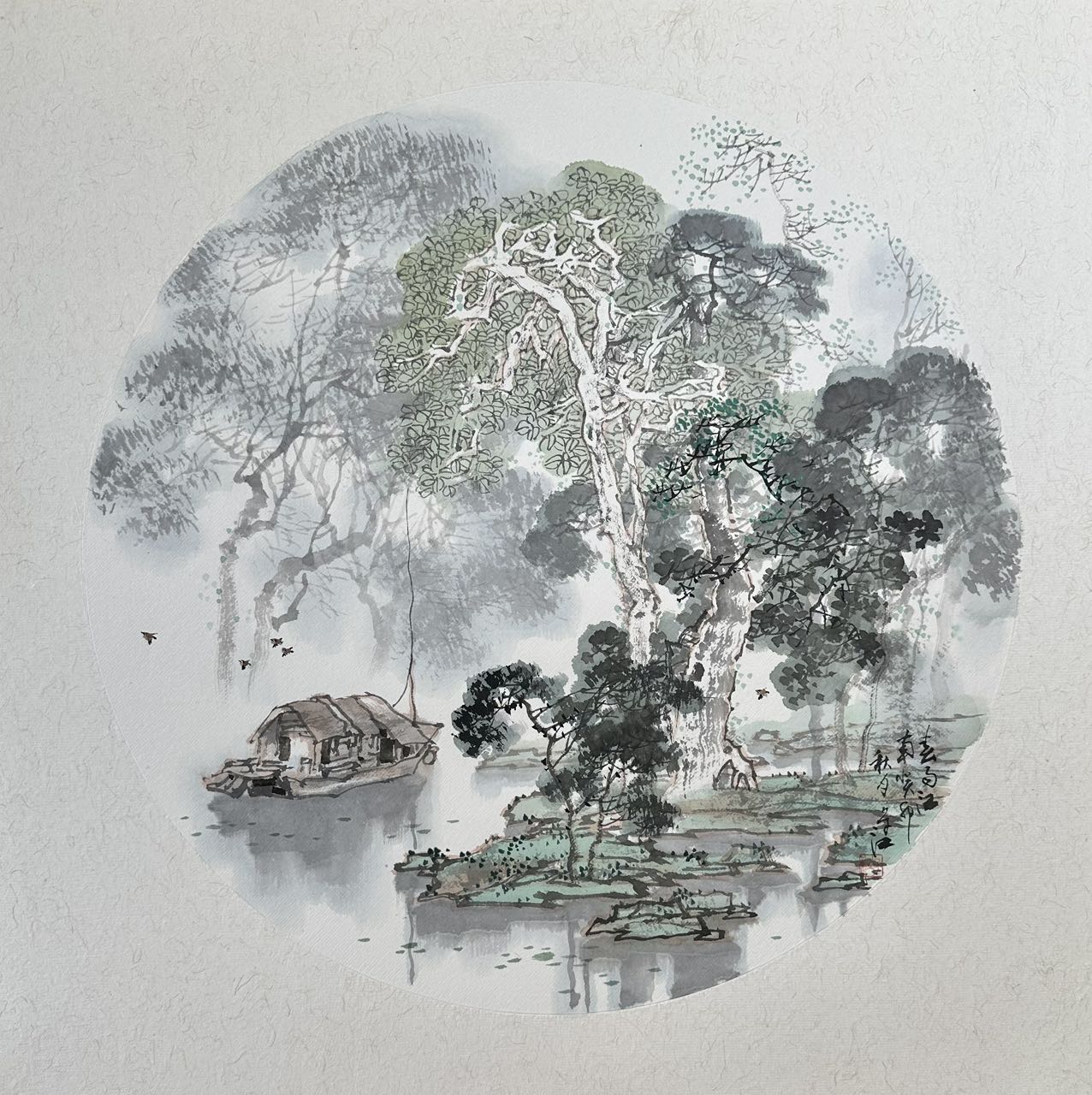 23)《春雨江南》(50 x 50 cm)墨彩画