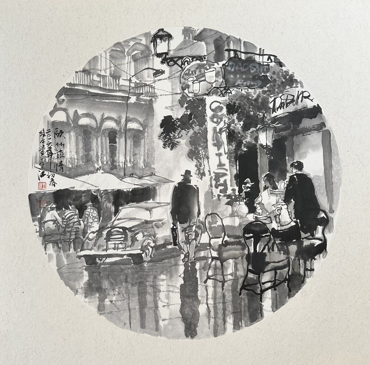 25)《歐洲旅情》(50 x 50 cm)水墨画
