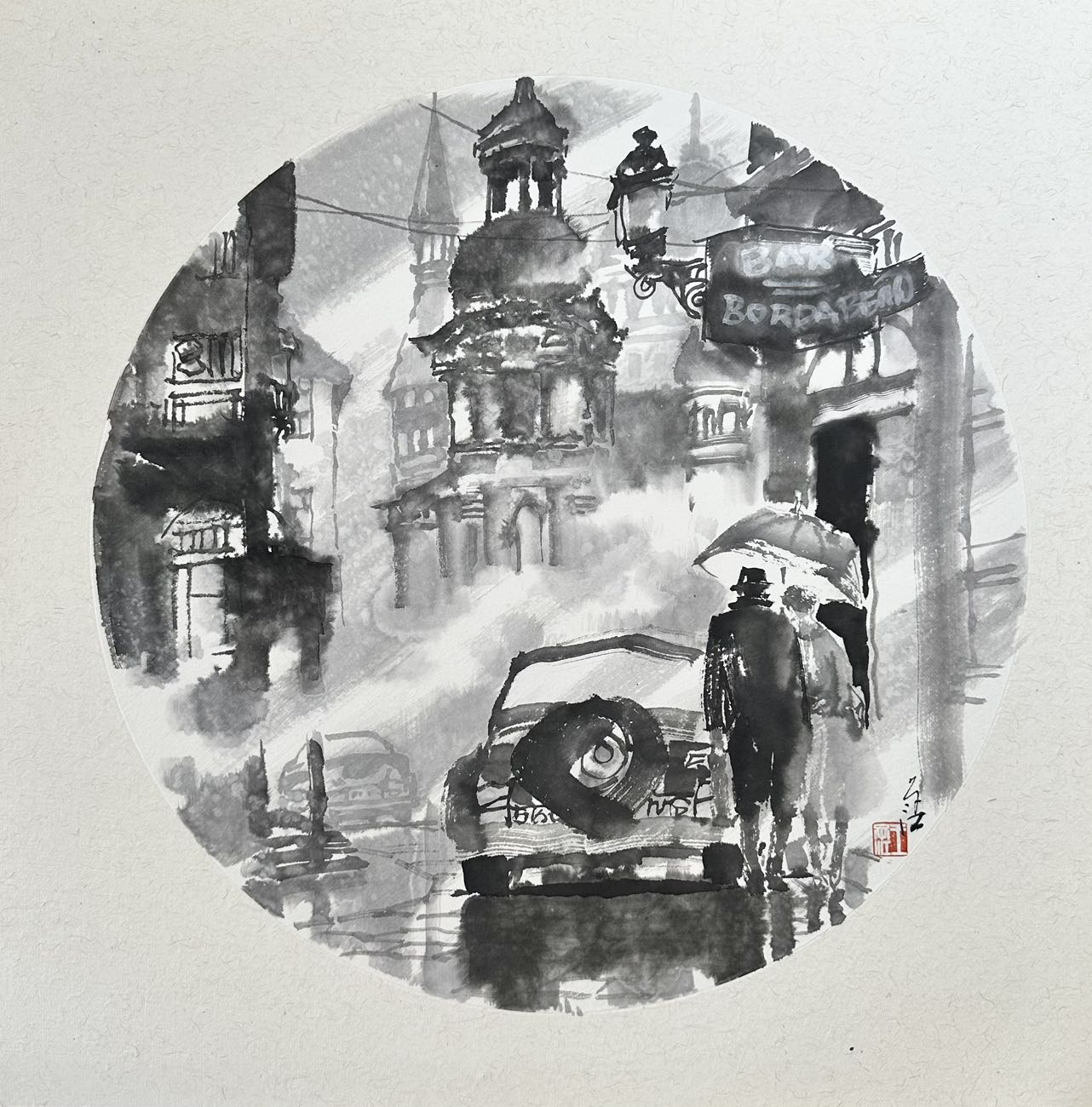 24)《歐洲旅情》(50 x 50 cm)水墨画