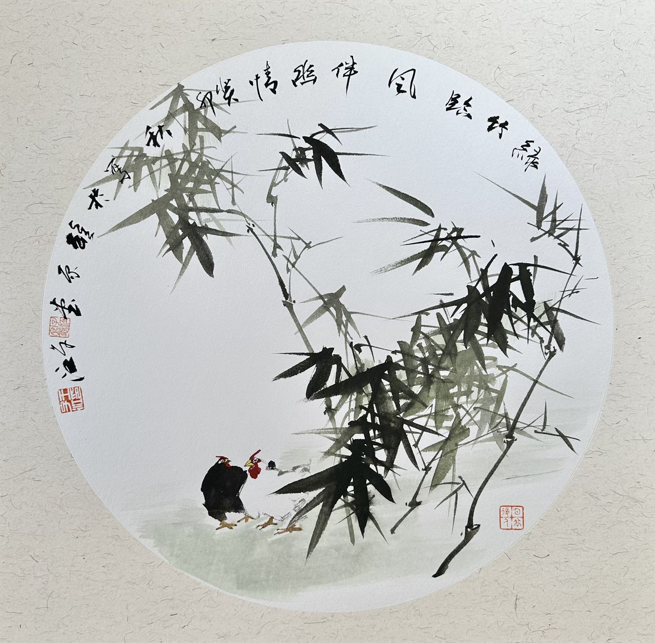 26)《綠竹臨風》(50 x 50 cm)墨彩画