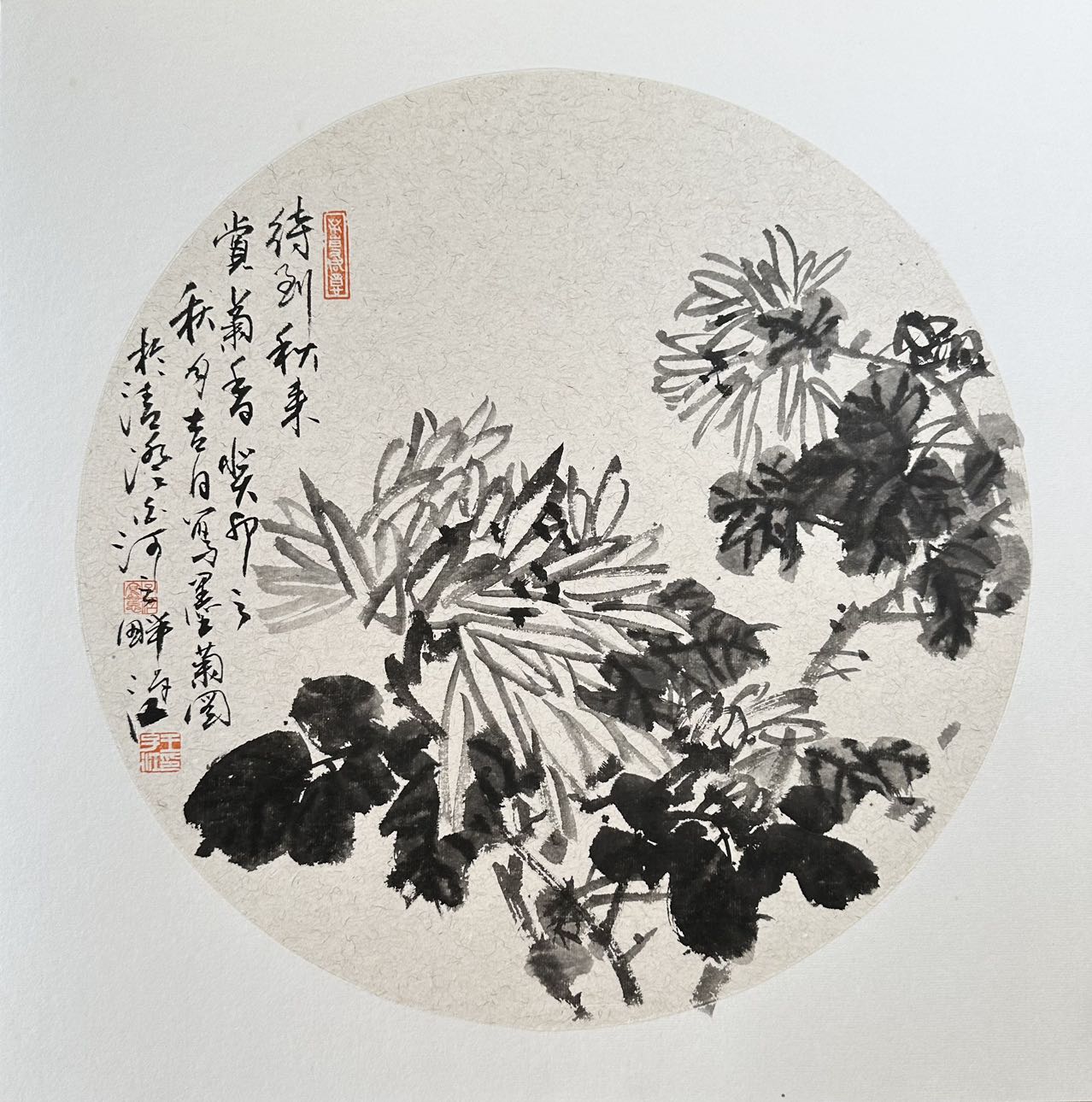 36)《待到秋來賞菊香》(50 x 50 cm)墨彩画