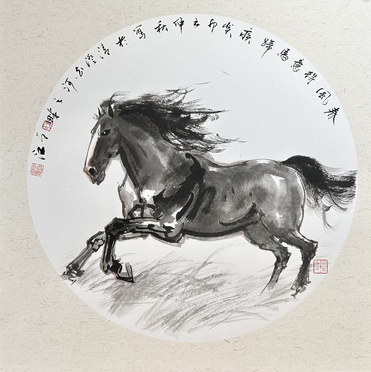 38)《馬到成功》(50 x 50 cm)墨彩画