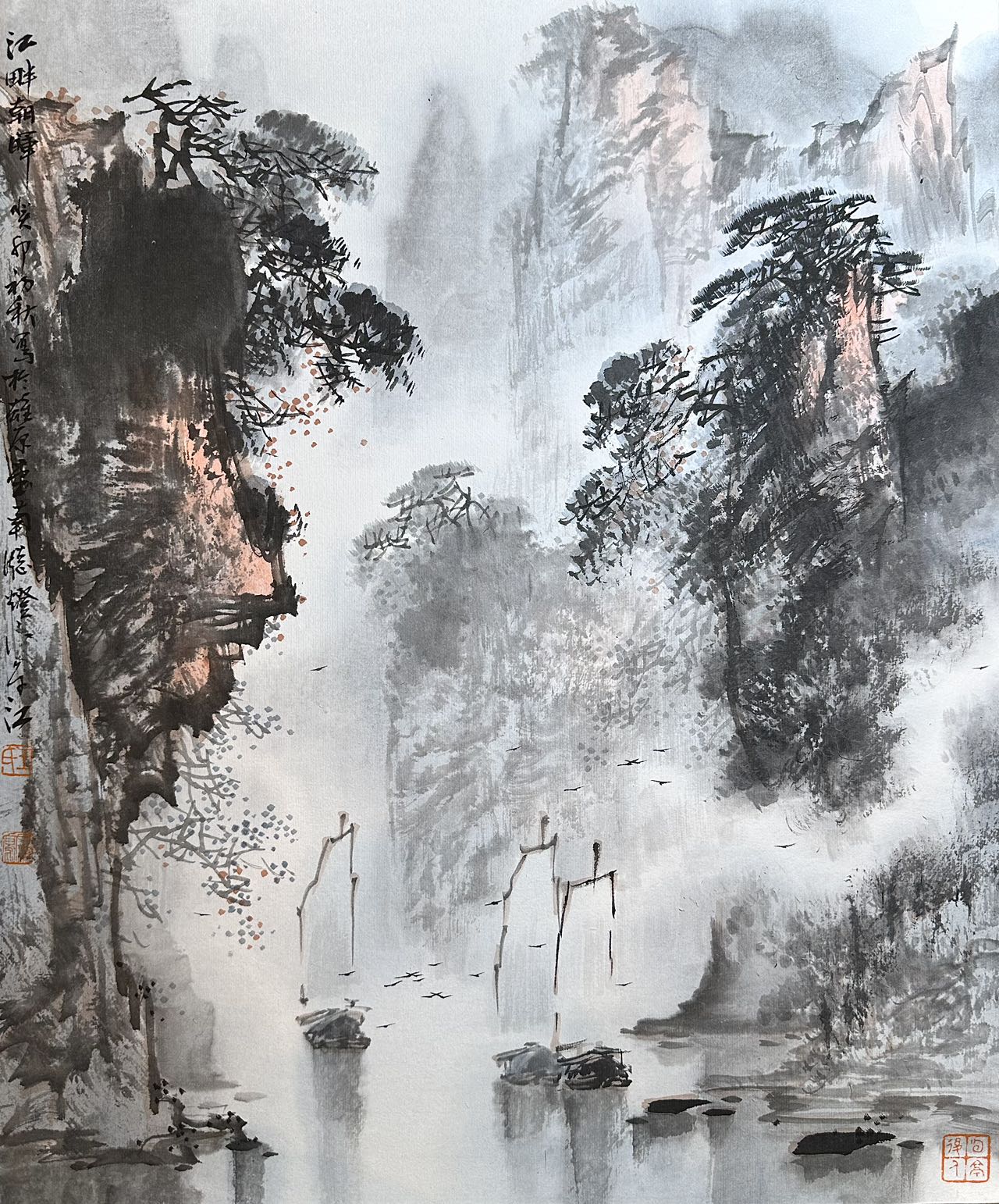 41)《江畔朝暉》44.5x37.5cm  墨彩画