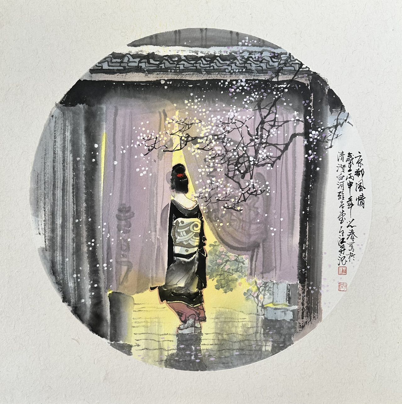 45)《京都風情》(42. 5 x 42.5cm)墨彩画