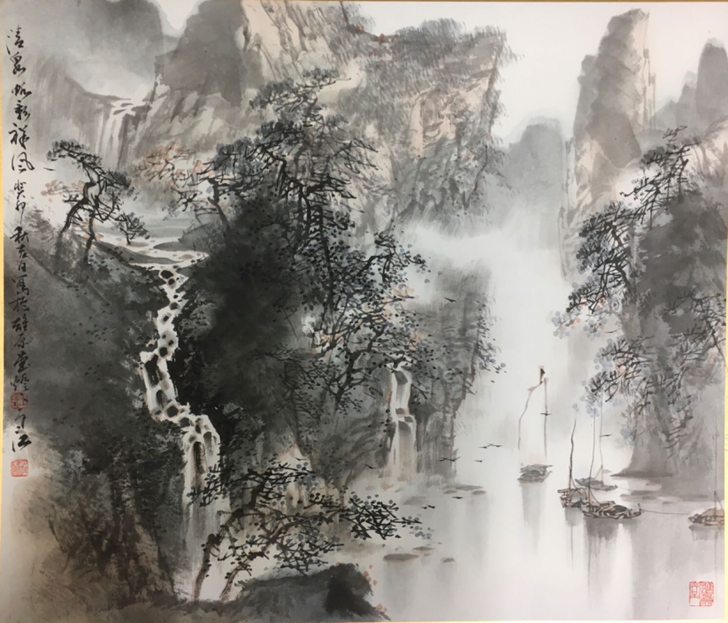 46)《 清泉帆影 》  52x44.5cm  墨彩画