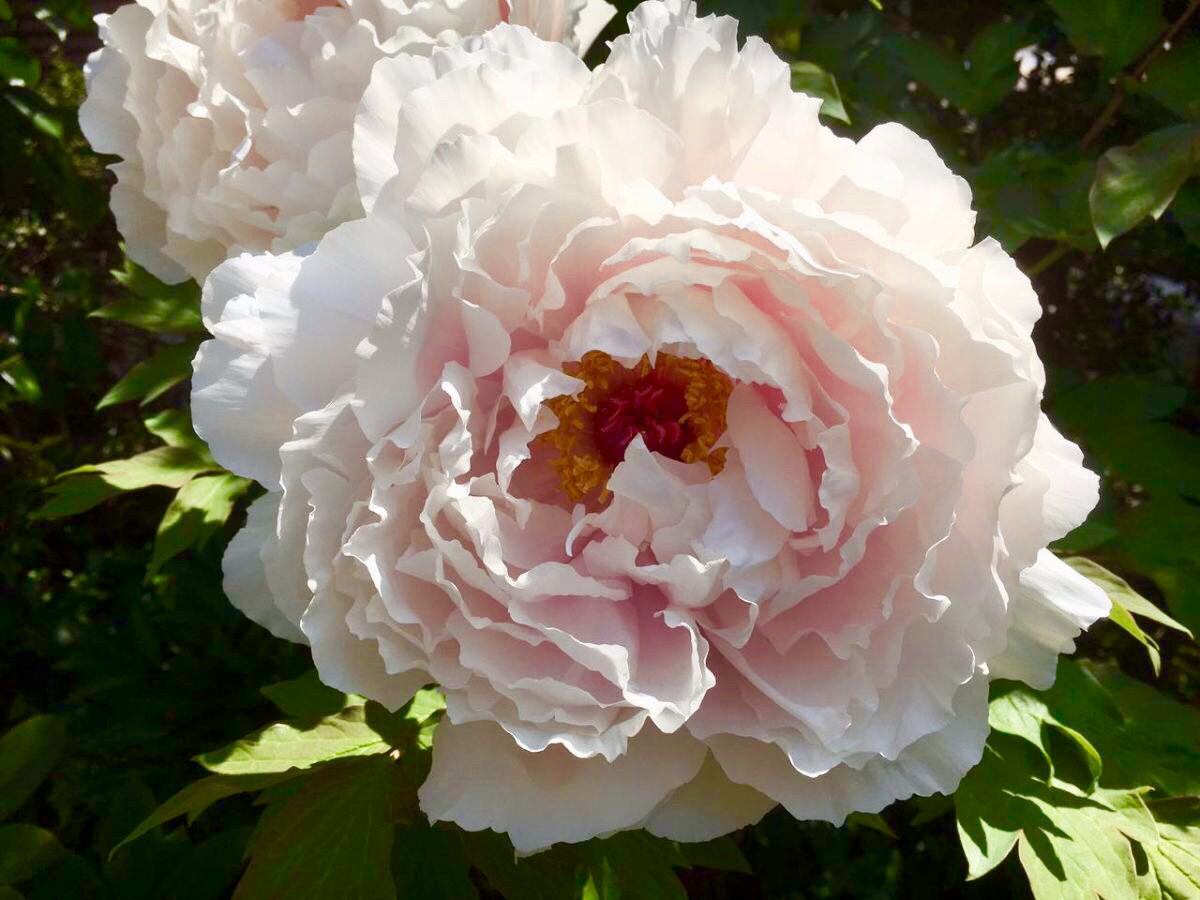 清晨,院子里的牡丹突然地开花了,