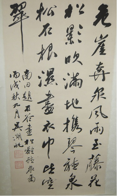 于是,晋鸥决定自己干了。2007年春天,他毅然决然地卖掉了老家的几处不动产,手里有了一笔可观的可以灵活使用的资金。由于晋鸥在日本书画篆刻圈里有很多的人脉,有了资金,机会很快就随运而生。黄金周的那天晚上,一位熟识的日本篆刻家朋友打来了电话,说他准备出让自己珍藏多年的二件中国名人字画,一件是吴昌硕的大幅秋艳图,另一件是包世臣的“读有用书”行书匾额。放下电话,晋鸥高兴的差一点跳起来。原来十年前,晋鸥就在那位 日本篆刻家朋友家里看到过这二件作品,特别是吴昌硕的那件藏品,画风雄浑精湛,落款就有一百多个字,字字苍劲有力。当时的晋鸥十分激动,询问友人是否肯出让,但友人没有同意。想不到十年之后的今天,自己朝思暮想的珍品却找上门来,而且友人的要价也不离谱。在开车回家的路上,晋鸥看着星光灿烂的夜空,心情很是惬意。
