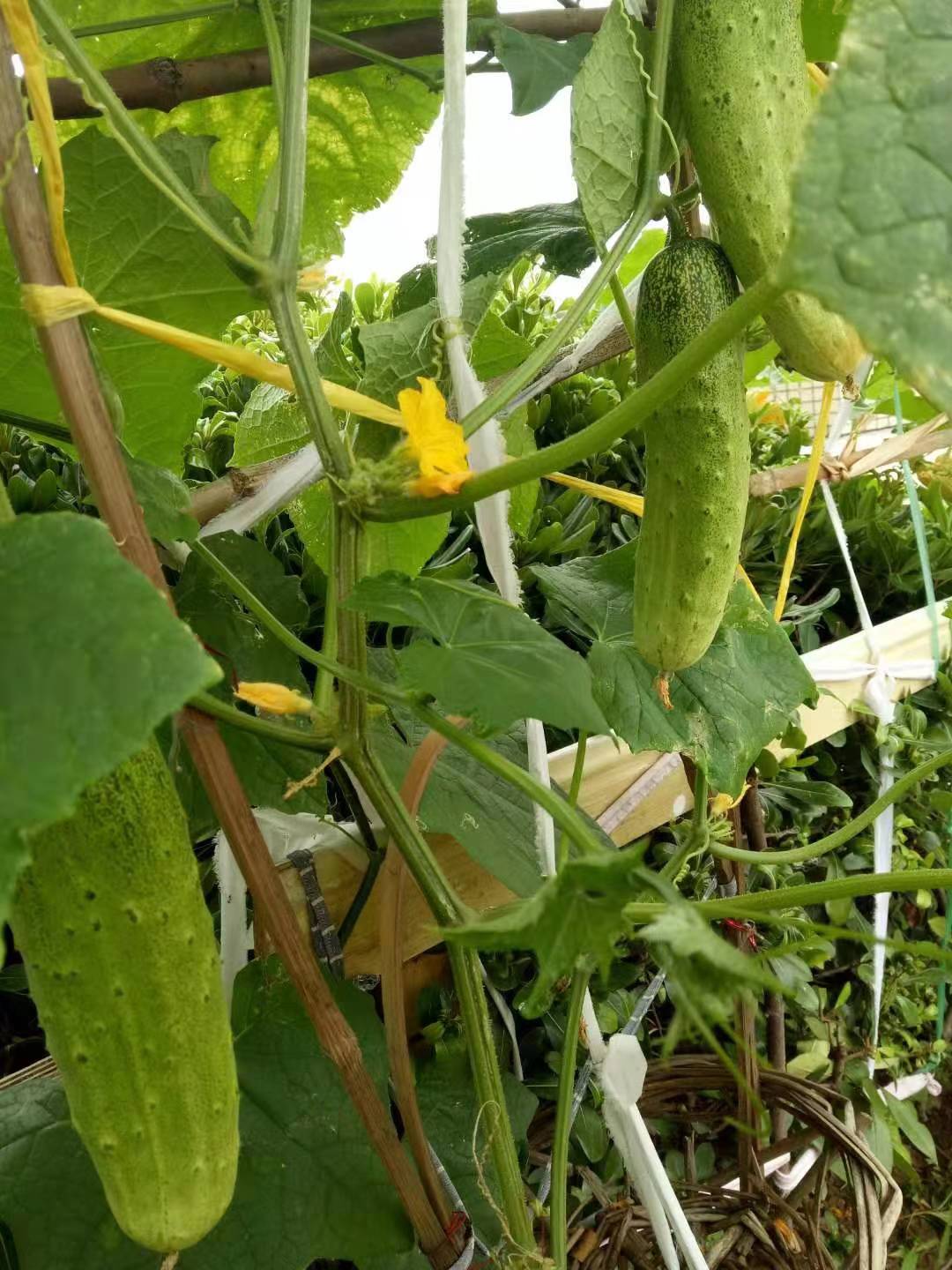 茄子开花结了,一棵茄子竟长出20根茄子,看到丰硕成果,满心喜欢。黄瓜也开花结了。然而,南瓜爬藤,叶子也很茂密,黄色的花像喇叭花一样,开得很盛;没有多久,花谢了,没有一个结果!
