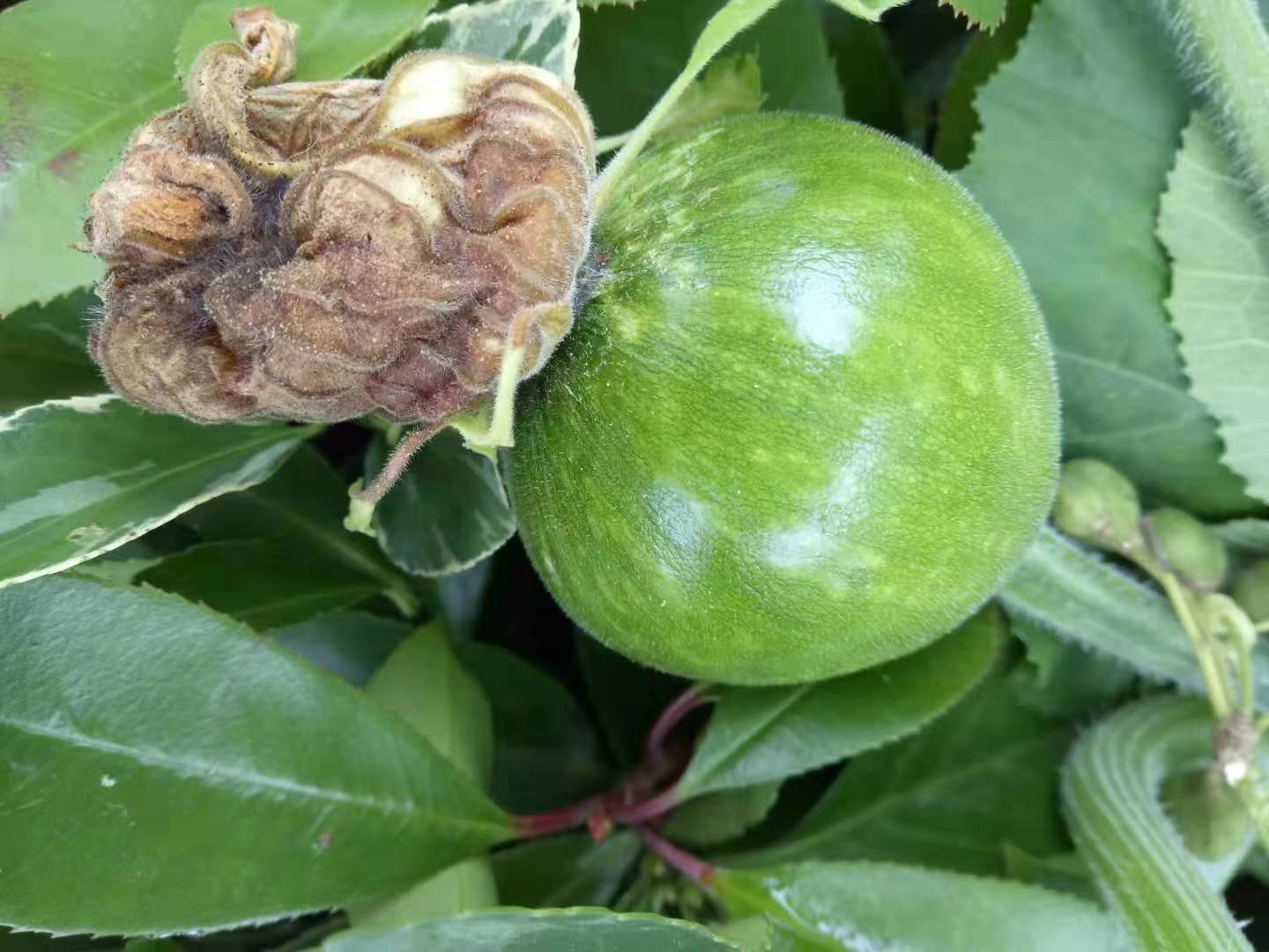 经过几天的观察,惊奇的发现雄花多,有时开十几朵雄花,雌性却没有一朵!是什么原因,我不知道!怎么有点像现在的社会,男孩子多,女孩子少。