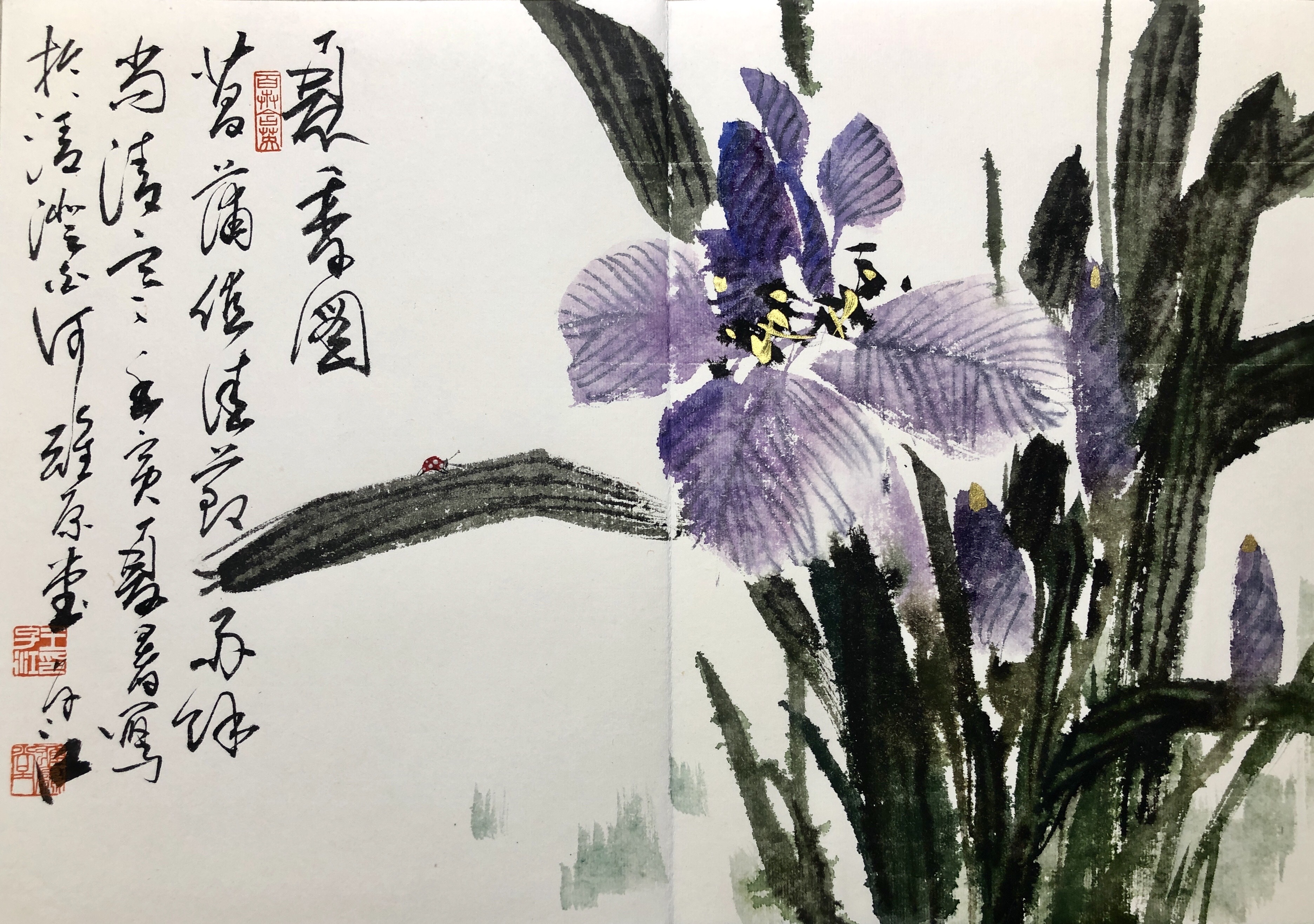 《夏香圖》菖蒲值佳節.雨餘尚清寒。壬寅夏暑写于清澄白河雄原堂  。子江